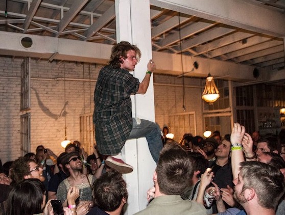 Though Mac DeMarco, everyone’s favorite goofy crooner/rocker isn’t an Arbutus Records artist, he is from Montreal and a dear friend to these musicians. This was the 3rd time I’d seen DeMarco (who was still wearing the same garbs) at SXSW, and not purposefully, he just seemed to be everywhere. However, this was by far his best performance, as he seemed to be in true bizarro form amongst friends. At one point mid-performance, DeMarco scrambled up a wooden beam and began swinging from the ceiling rafters which throughly pissed off venue owners, yet pleased the crowd to no end.